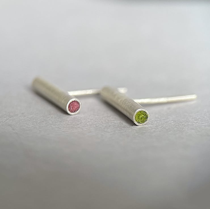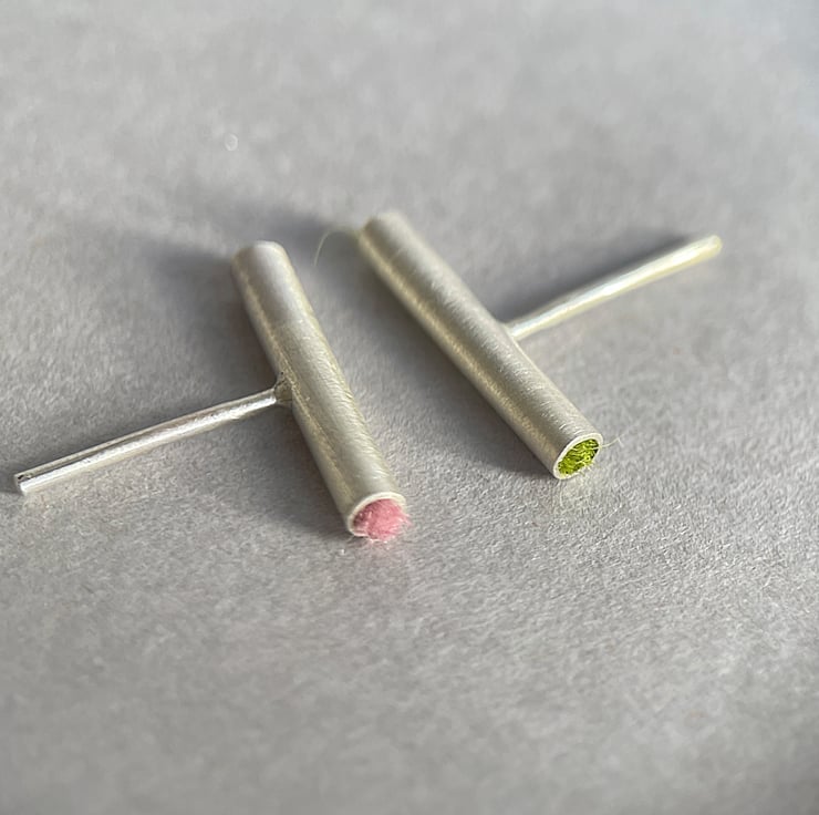 Inside each silver tube I put a felt in two different colors, pink and green.