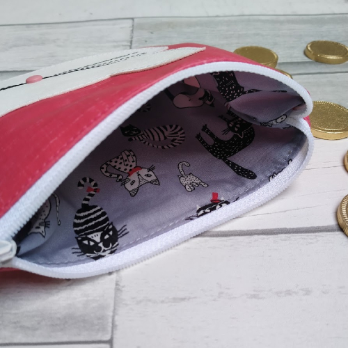 This handmade, vibrant pink oilcloth purse would be the perfect gift for a cat lover. Designed as a purse, but it could also be used as a small make-up bag or to carry a phone.
