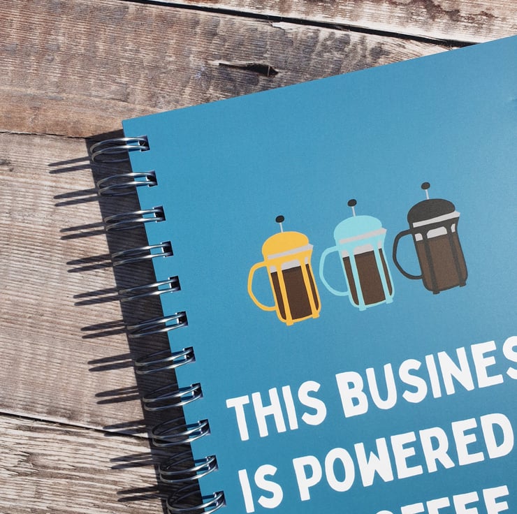 A lie flat binding with a large and strong silver wire for extra durability. Backed with a strong greyboard.