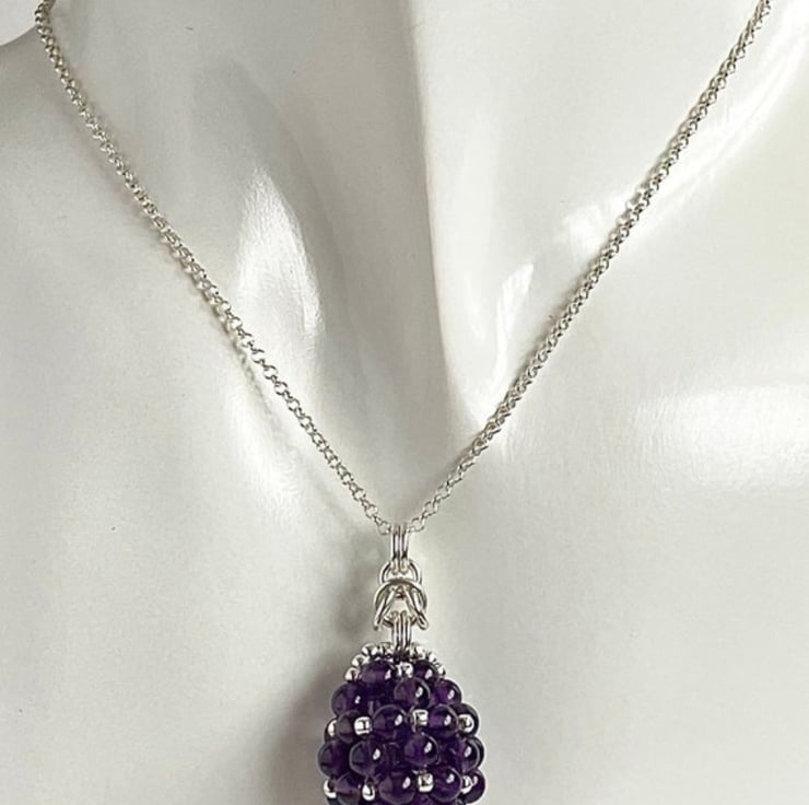There are over 40 crystals in the egg which have sterling silver round beads placed between the crystals.