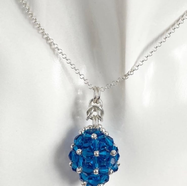 The bail has been made with sterling silver rings creating a chainmaille weave and the 18 inch chain slides through the top of the chainmaille bail.