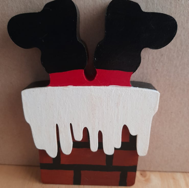 This free standing decoration is made of wood that has been decorated with acrylic paint and sparkle. It would look great in your home to add to the festive cheer.