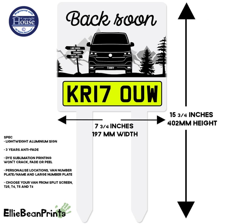 Personalise your van type, number plate (reg number and colour) along with the locations of your choice on the signposts.