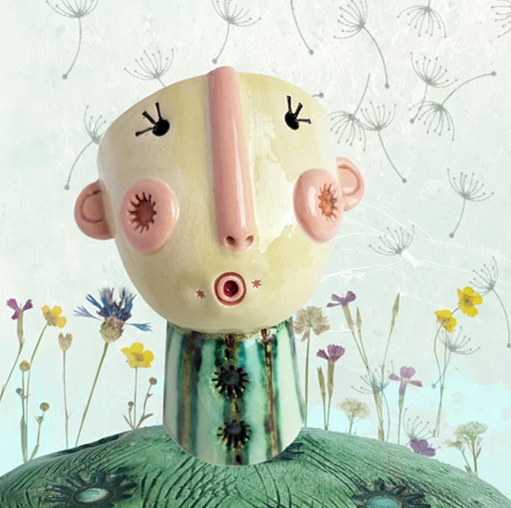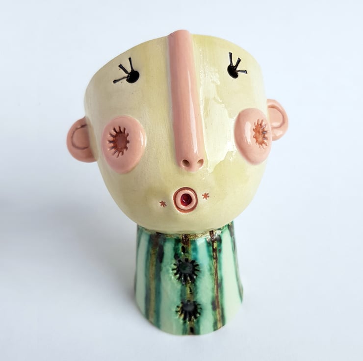This series of cheerful handmade ceramic ’Happy Heads’ have been especially created to bring joy to your home. The personal touch comes from the layers of surfaces, multiple firings and my own one of a kind copper glaze brewed from waste copper scraps.