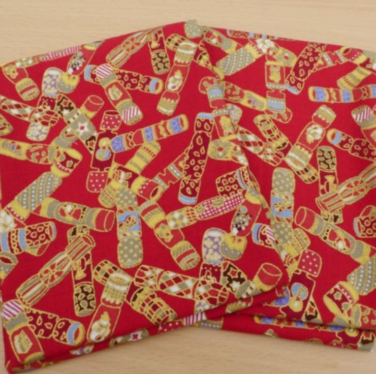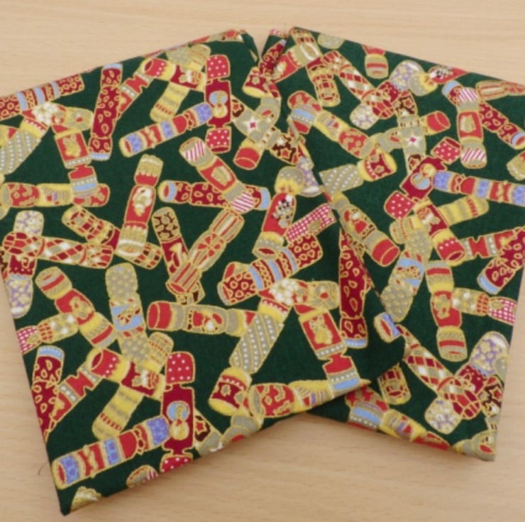 I have these fat quarters of Christmas fabric available at low prices. It is available in 3 different colours, Red, Green and white in which all have a Christmas cracker print in gold, pale green and light blue. It's very good quality cotton fabric ideal for any crafting project including quilting project.