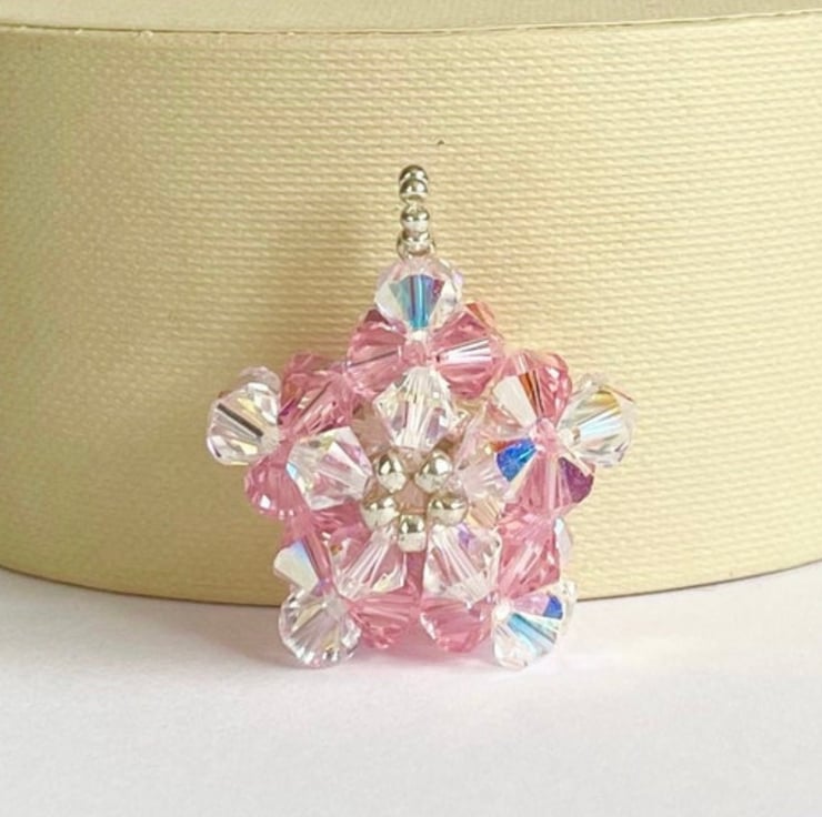 The rose pink and clear ab (aurora borealis) crystals have dazzling iridescence and are a perfect combination in this uniquely styled star.
