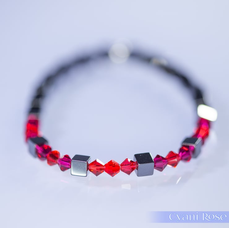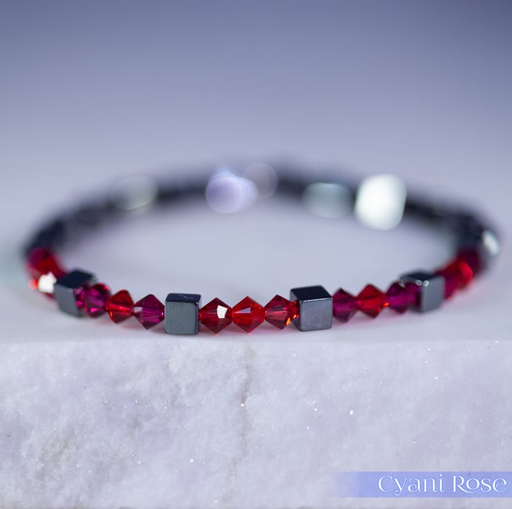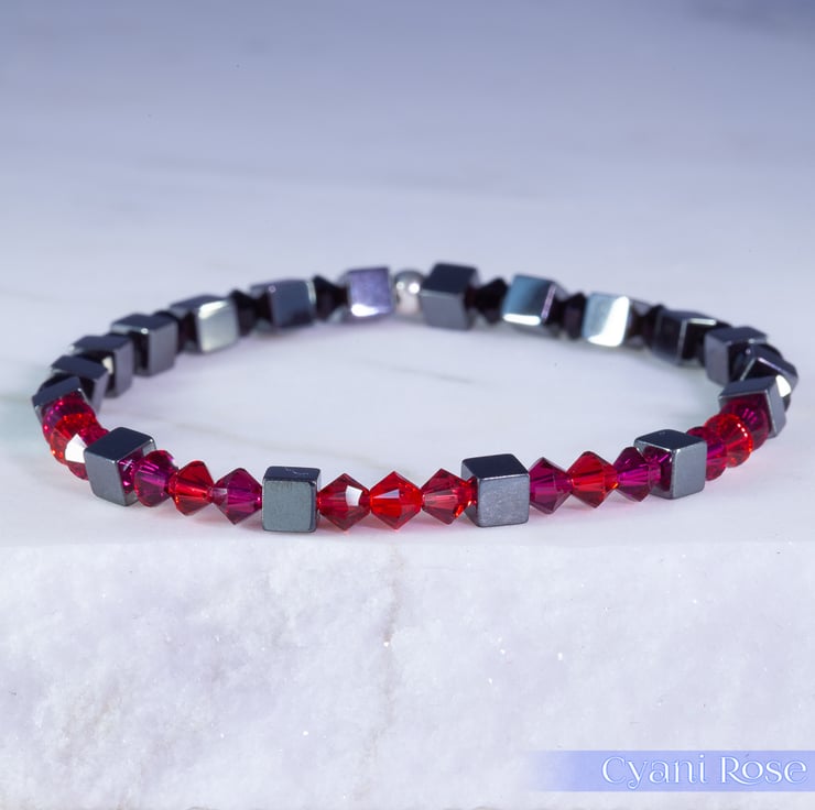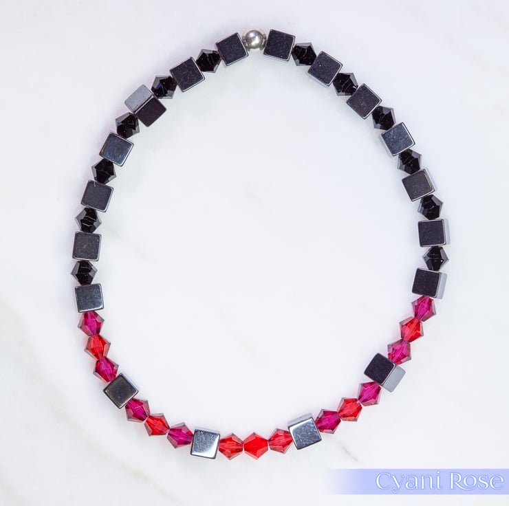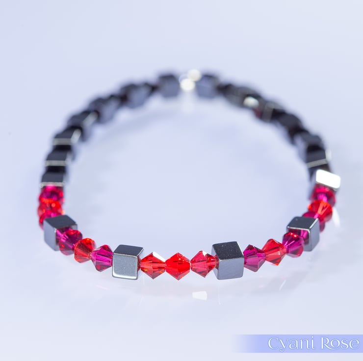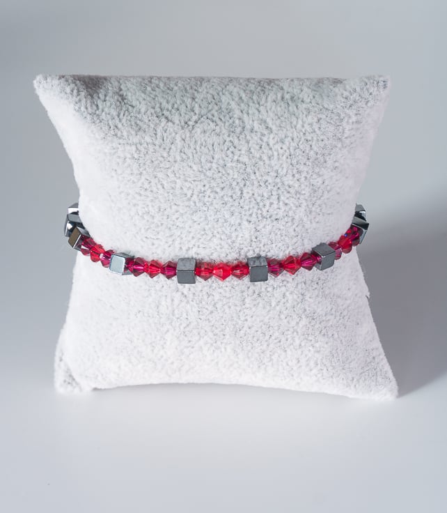 It is handmade with 4mm Swarovski beads 4mm hematite cubes and a 4mm sterling silver bead