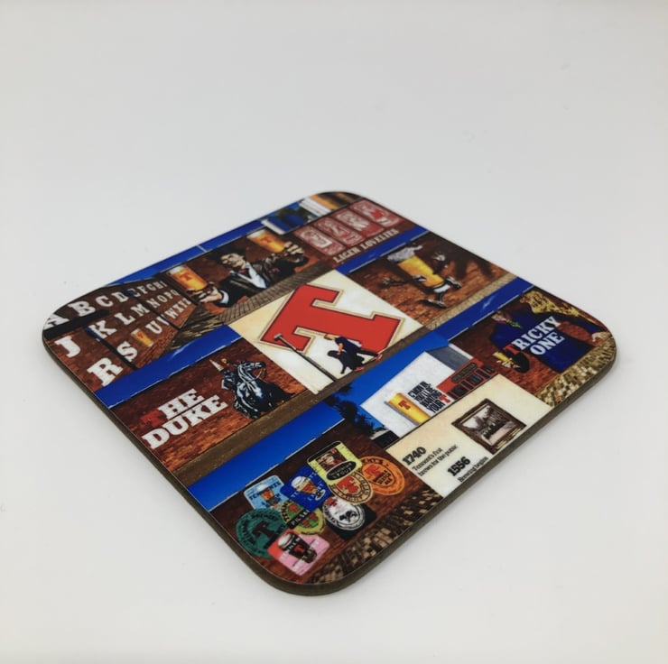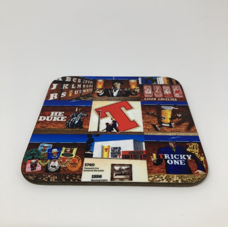 My original ‘Tennent’s’ collage on this lovely high gloss coaster