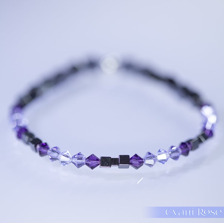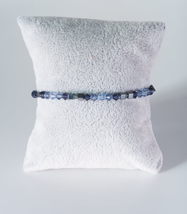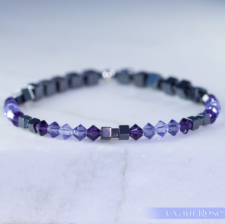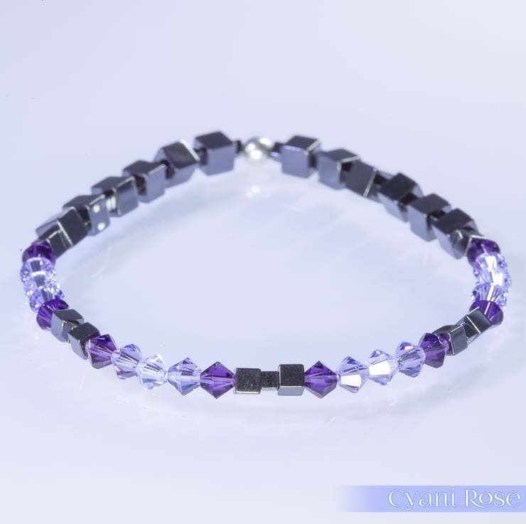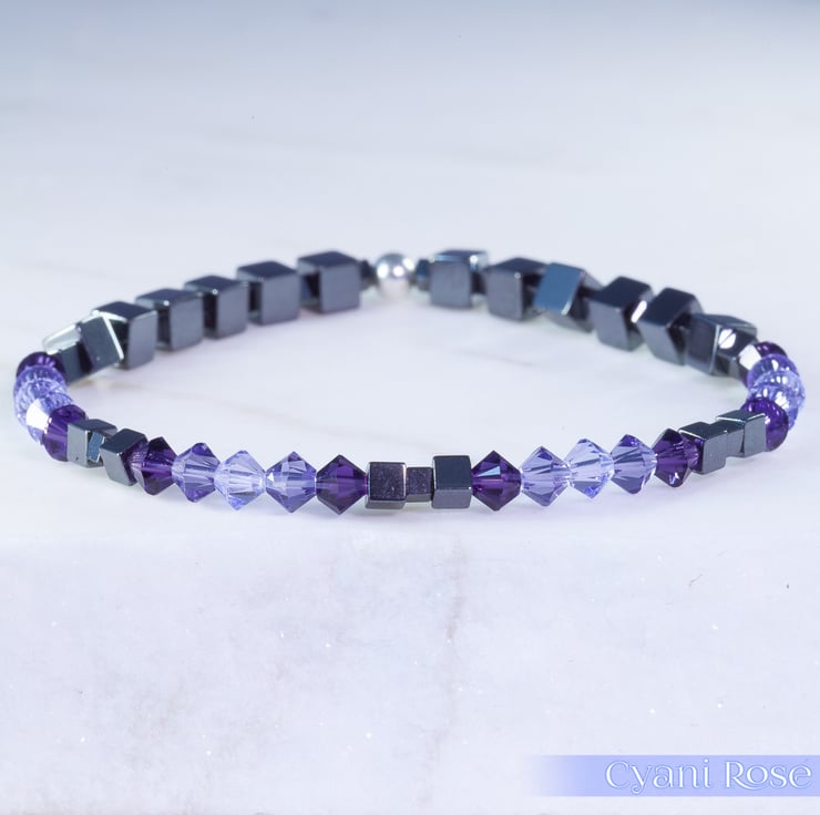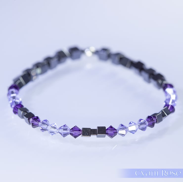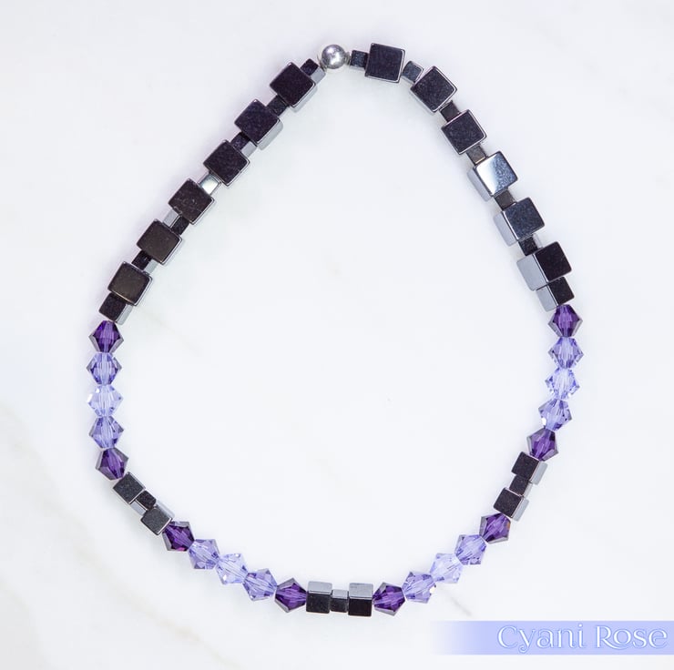 It is handmade with 4mm Swarovski beads 4mm hematite cubes and a 4mm sterling silver bead