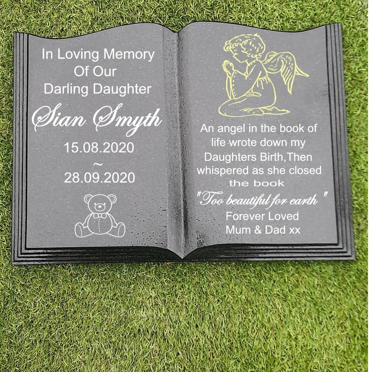 Precisely Laser Etched Directly into the Granite using our state of the art technology, for a fully weatherproof and high quality finish.