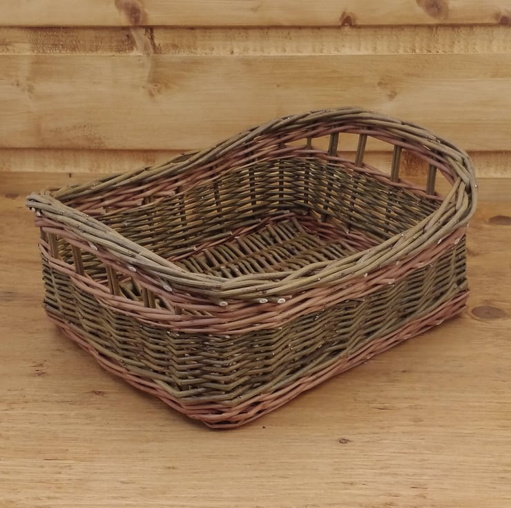 Rectangular storage basket with handles and gently curved blunt corners. Handmade in the highlands with willow varieties grown in the UK. Colours may vary slightly from the photos depending on the willow that I have available.