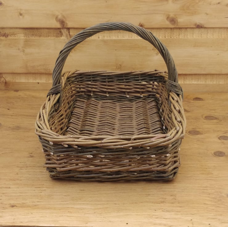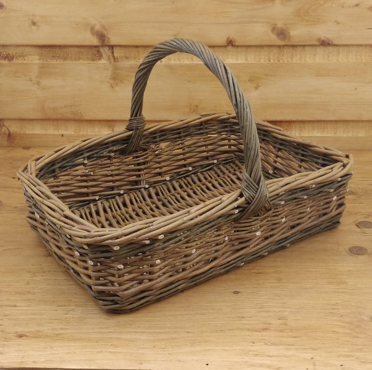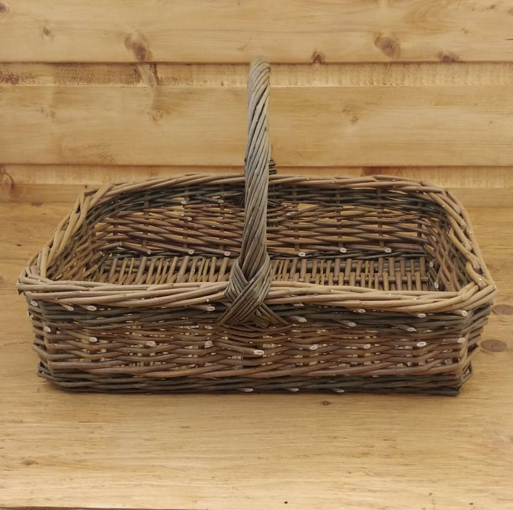 A basket to enjoy your garden with - whether it is picking vegetables, planting out seedings, or more. Rectangular basket with wrapped bow handle and herringbone detail.