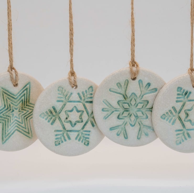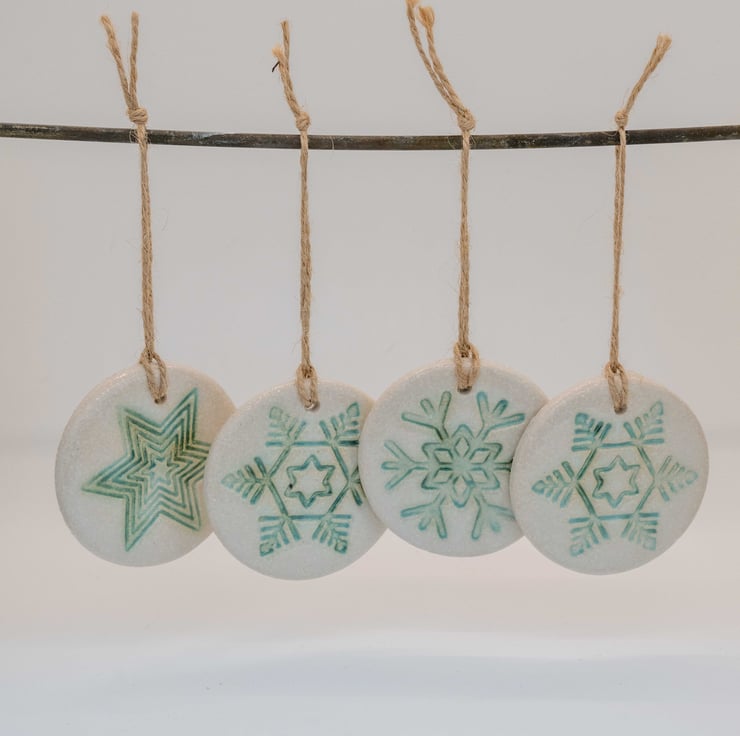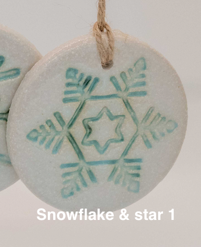 Handmade Ceramic Snowflake and Star Christmas Decorations