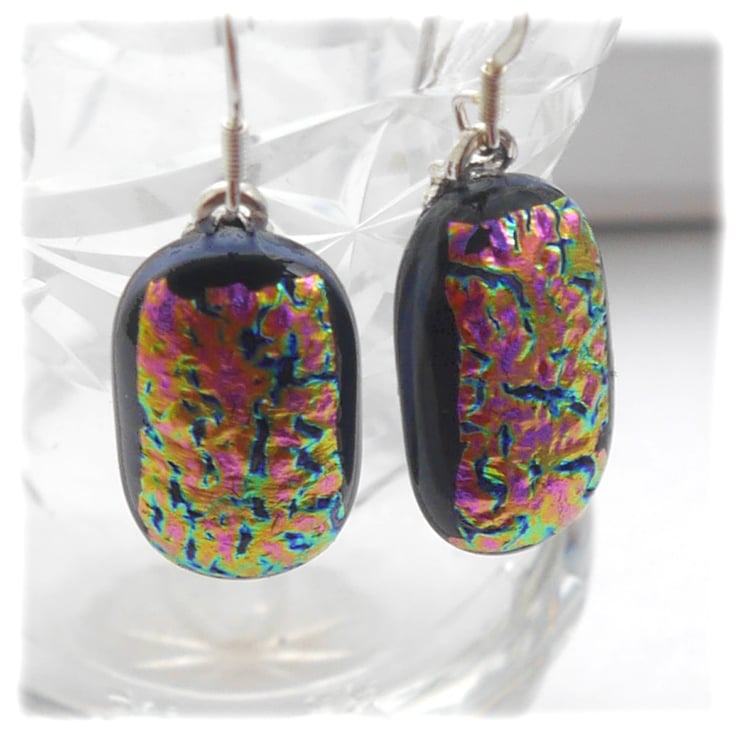 The dichroic glass cabochons for these earrings were handmade, by me, with love.