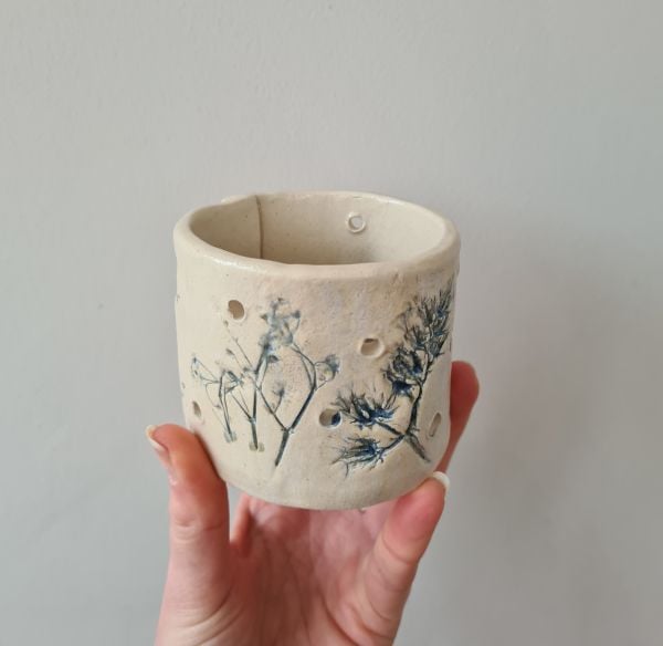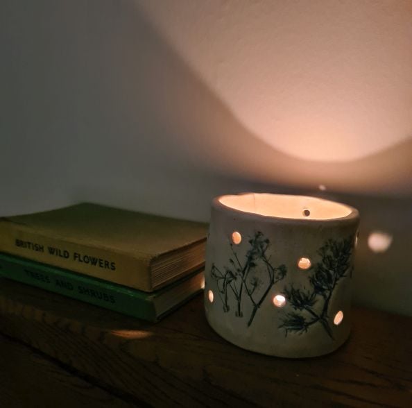 Handmade in my studio, these bespoke ceramic tea light holder measures approx 6-7cm tall.