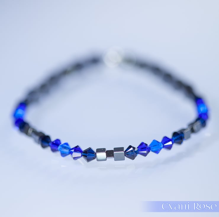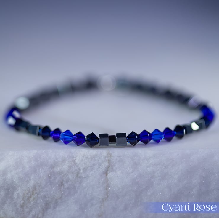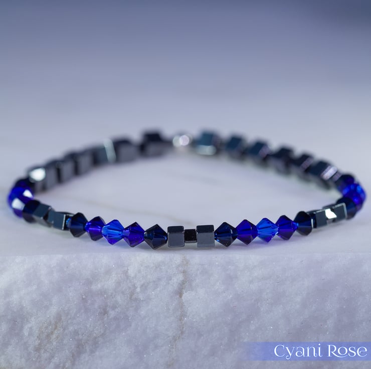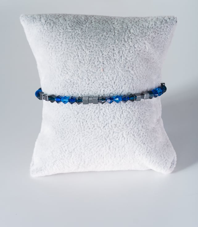 Swarovski and Hematite stretch beaded bracelet blue black