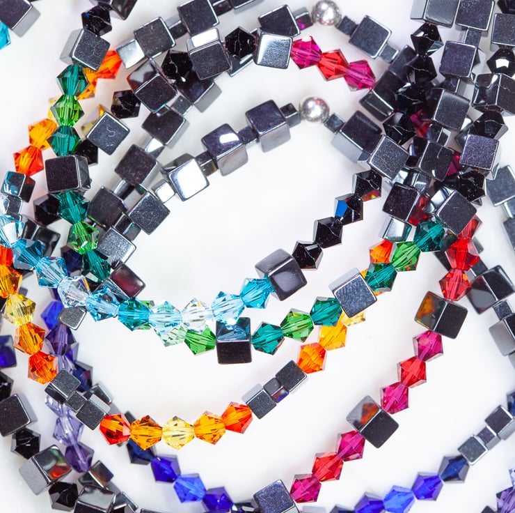The bright sparkly swarovski colours blend really nicely with the black hematite. It creates a sci-fi/futuristic style of jewellery.