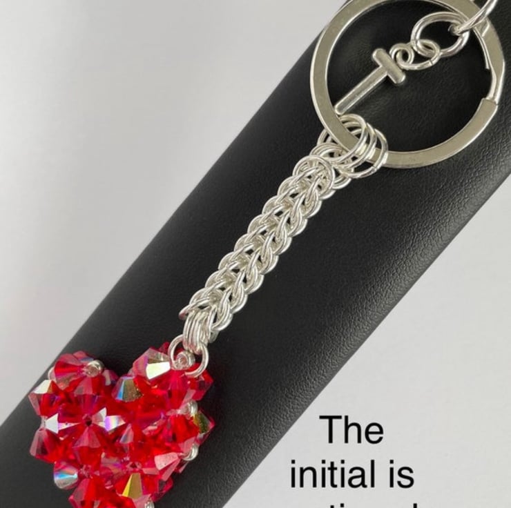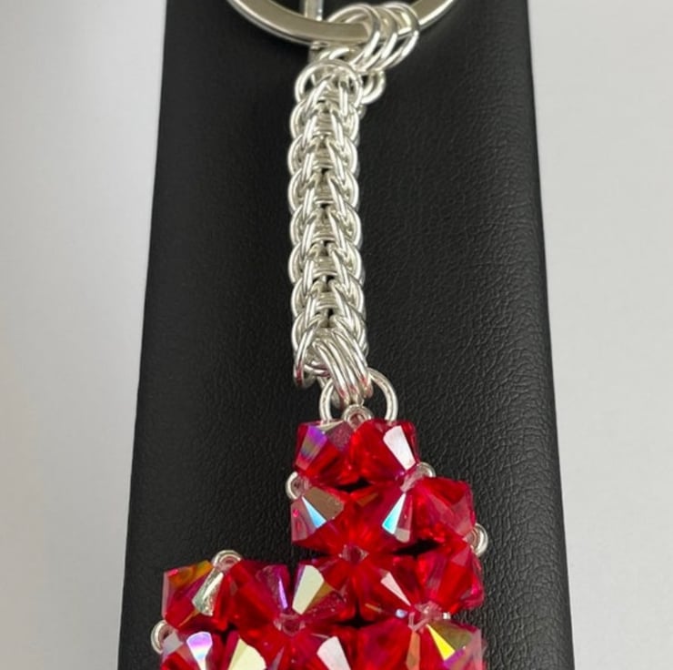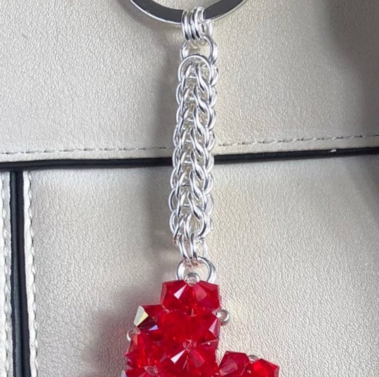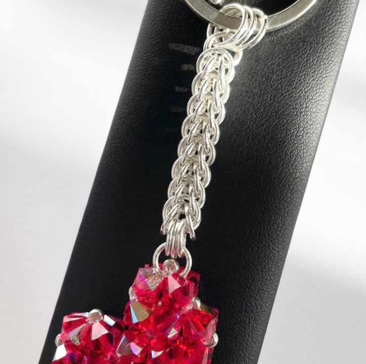 Handbag Charm, Red Crystal Heart, with a Chainmaille Chain and Keyring