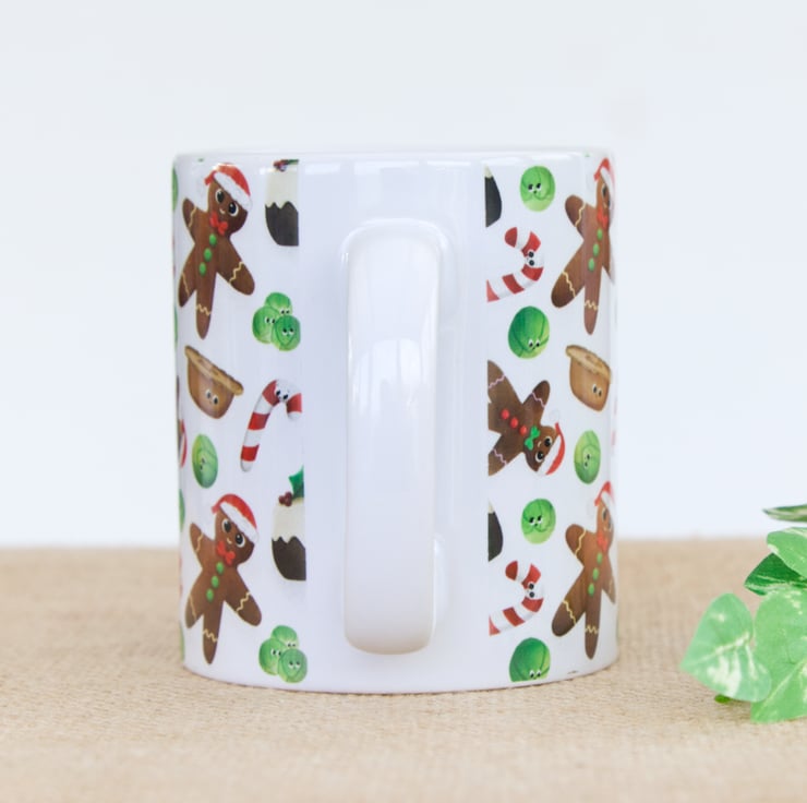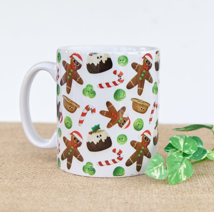 A bright and cheerful mug featuring a Christmas food pattern. The pattern was originally done in digitally and then it was printed and heat sublimated onto the mug.