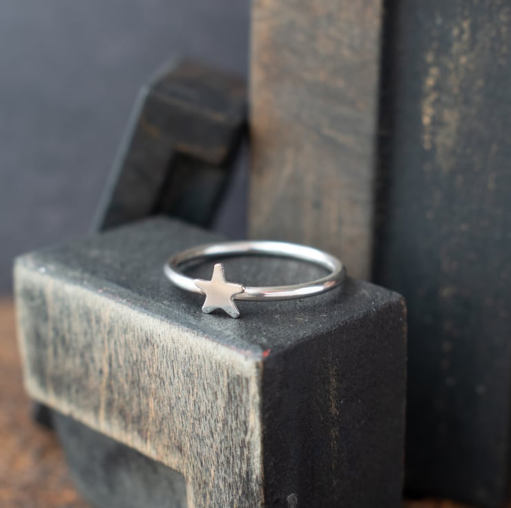 Beautifully simple sterling silver ring with tiny star embellishment. Wear alone for minimalist style, or stack with my other rings to create a boho layered look.