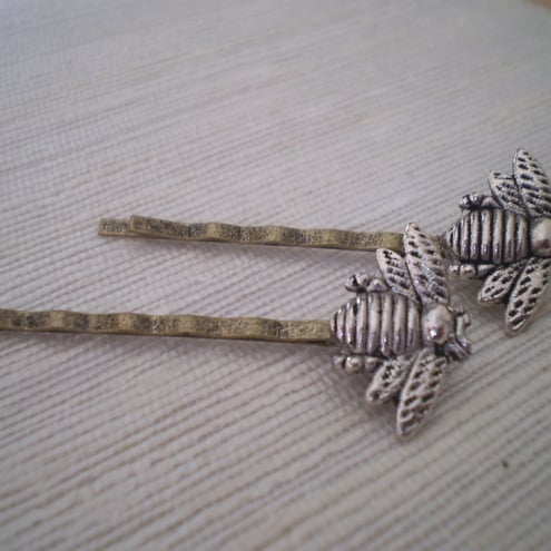 A cute pair of Bumble Bee silver tone antiqued hair pins/grips. A fun way to accessorize your hair. Would make a perfect stocking filler for Christmas.