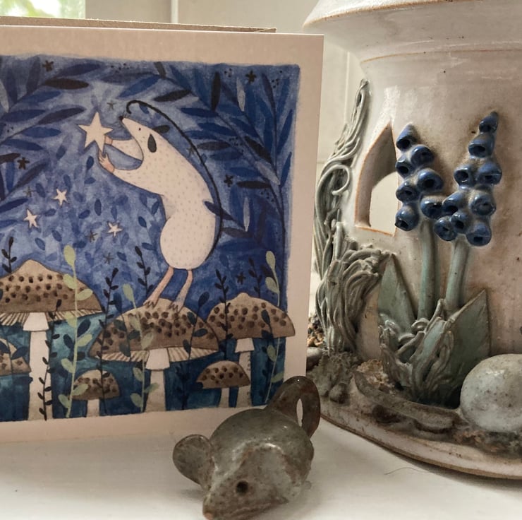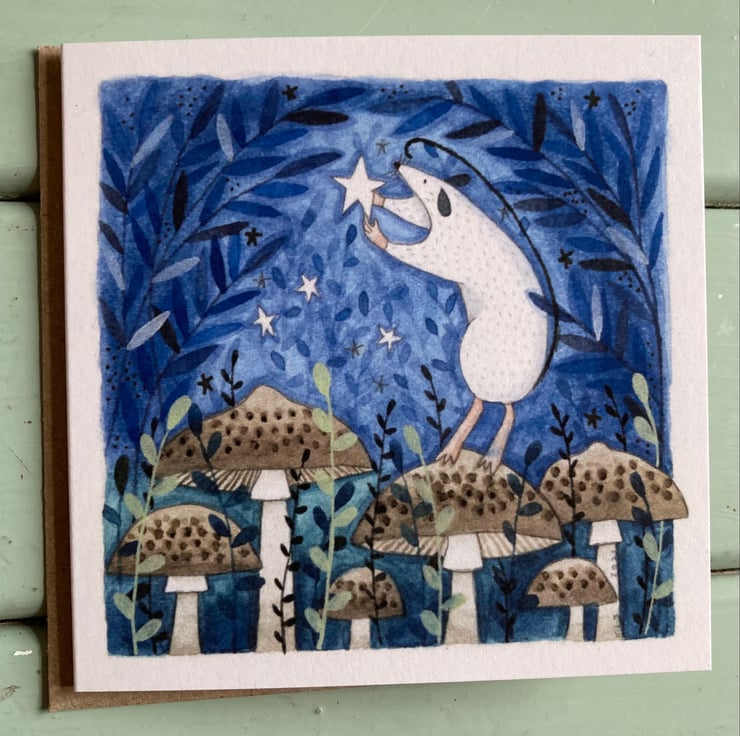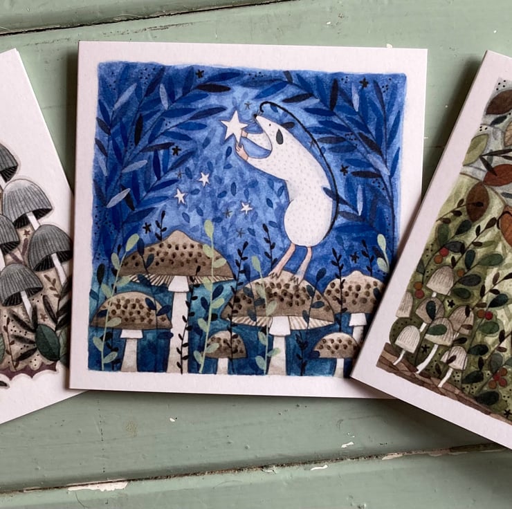 The inspiration for this design was all about mice getting ready for Autumn and Winter. Collecting important and useful things and welcoming in the new season. It’s part of three designs, Lighting up the Parasols, Gathering from the Glade and Singing under the Dogwood.