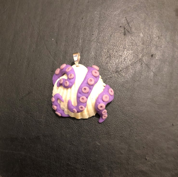 This spectacular, eye-catching, pendant measures 4cm x 4cm and is made from polymer clay mounted onto a shell. This is an original hand-crafted piece (that I'm rather proud of!!!).