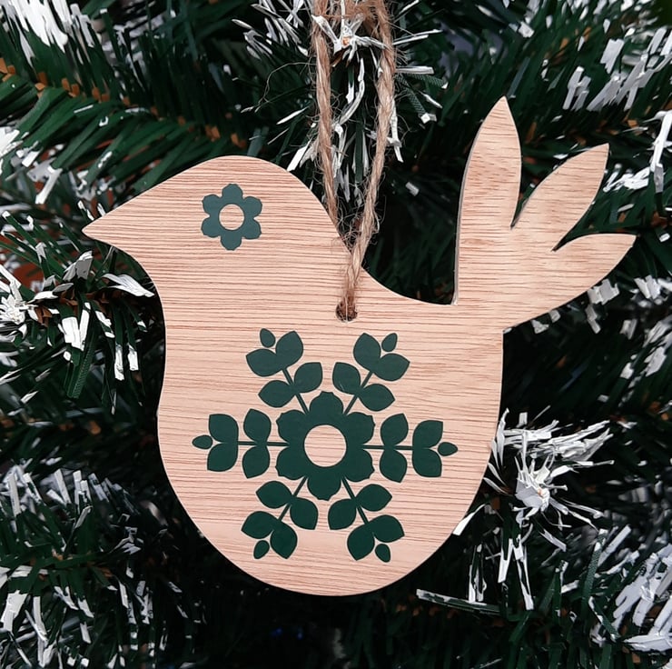 Available with a choice of black, red or dark green vinyl Flowerful decoration, your Hanging Dala Lovebird is individually handcut from quality 5.5mm Hardwood plywood, fine sanded by hand to a beautifully smooth natural finish and suspended with natural twine.