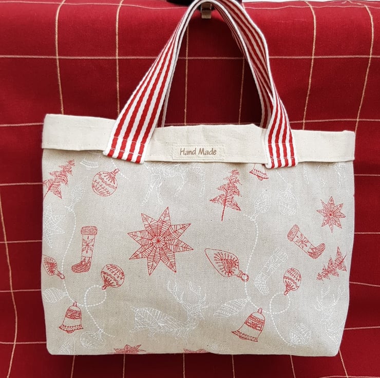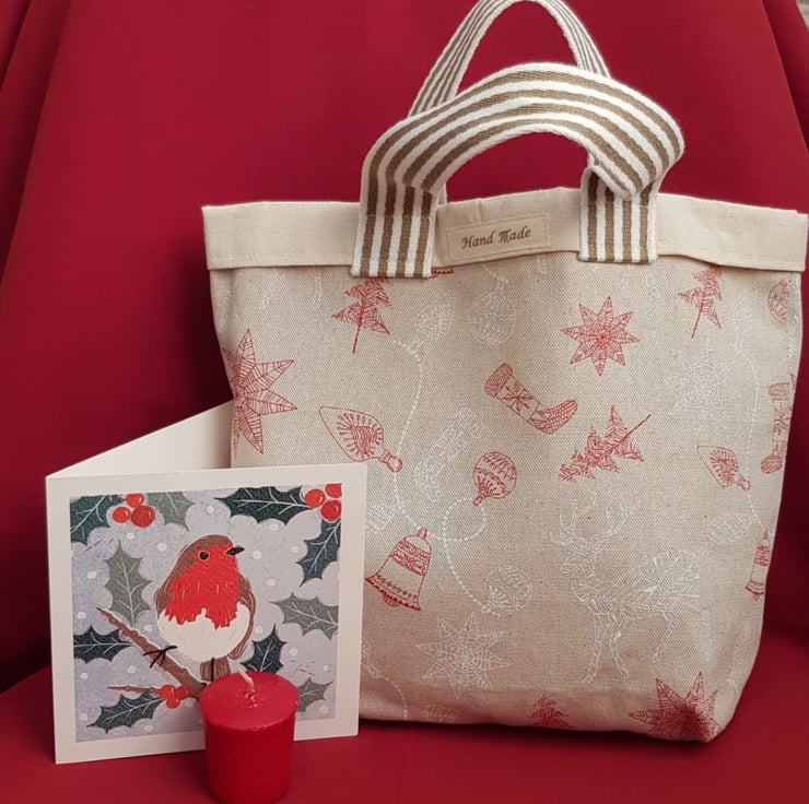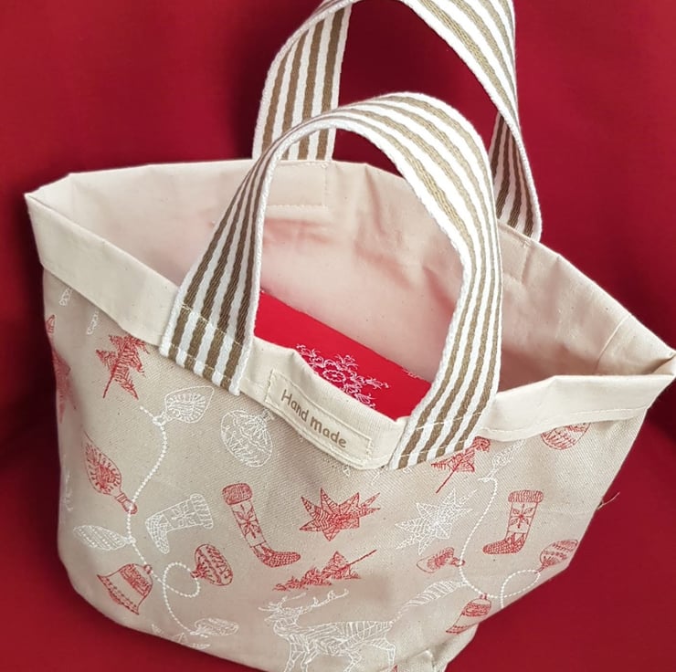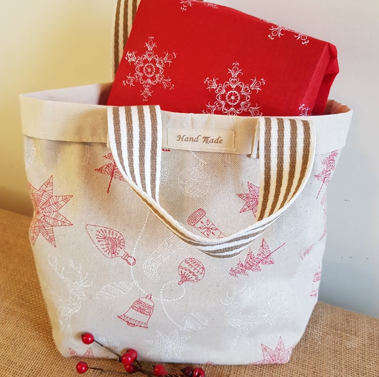 This festive fabric makes a lovely medium sized gift bag which is sustainable, reusable, and fun.