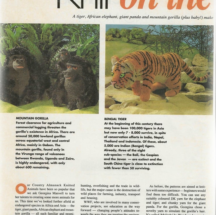 Georgina was asked to knit a series for Endangered Species. This is even more important than it was in 1992.when 5000 Bengal Tigers existed in the wild. Now sadly there are less than 2000