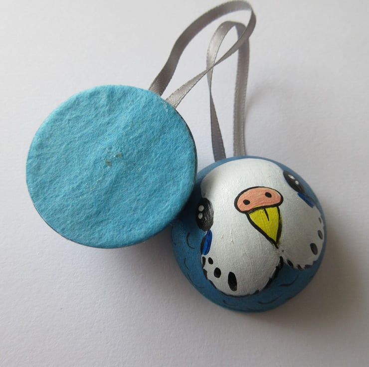 A cute budgie bauble, great for a Christmas tree or for year round use.