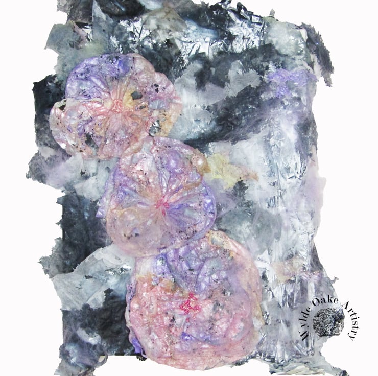 Original mixed media wall art - fragile, gently decaying blooms captured at dusk as the remaining light of the day bounces off fading petals reminding the view of the warmth of the day.