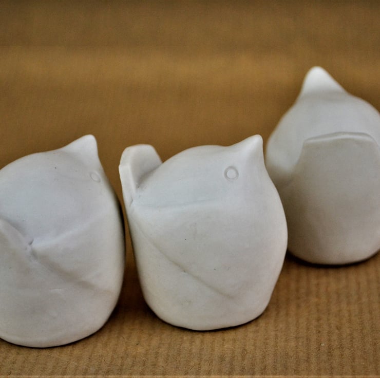 But I am pleased with the finish on these little sweeties, its almost a mindfulness moment. How you can wrap your hand around the whole bird, how it feels smooth to the touch and has a certain density to it, in the weight and the feel of the clay. I have used porcelain, very white, very smooth and although they are unglazed they have a sheen to the surface.