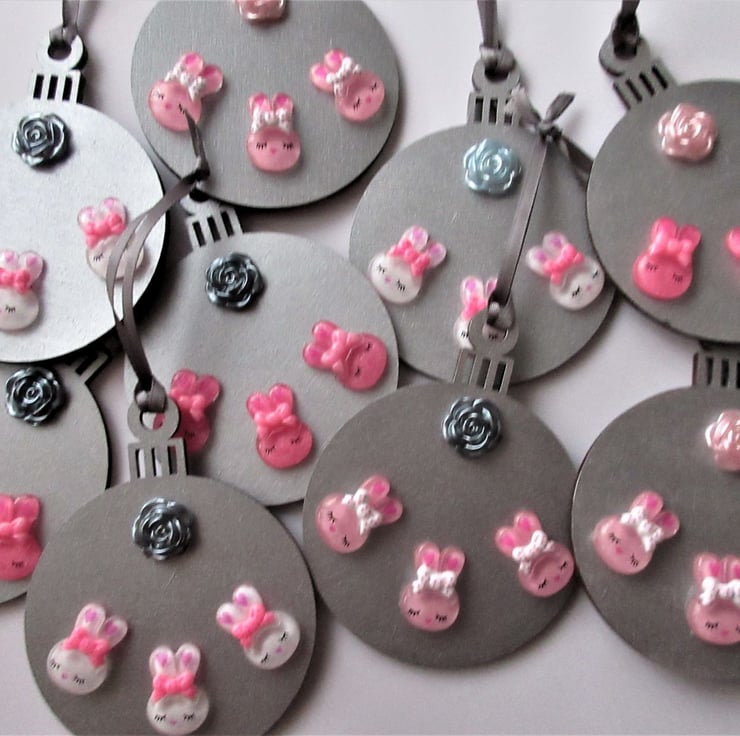 I love these cute resin bunny heads, and think they look great on a simple silver background.