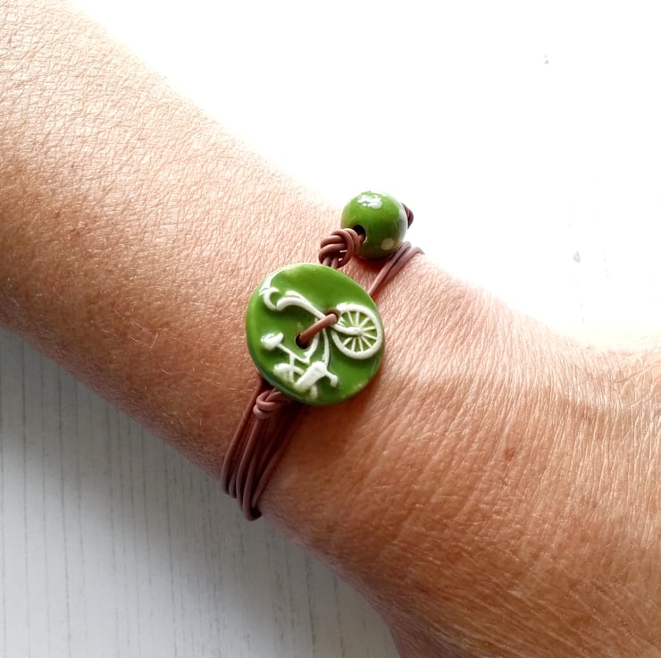 Simply wrap around the wrist three times and pass the button through the loop - you're good to go! The final photo gives you an idea of what this style of wrap bracelet looks like when being worn (albeit with a bicycle button rather than a sunflower).