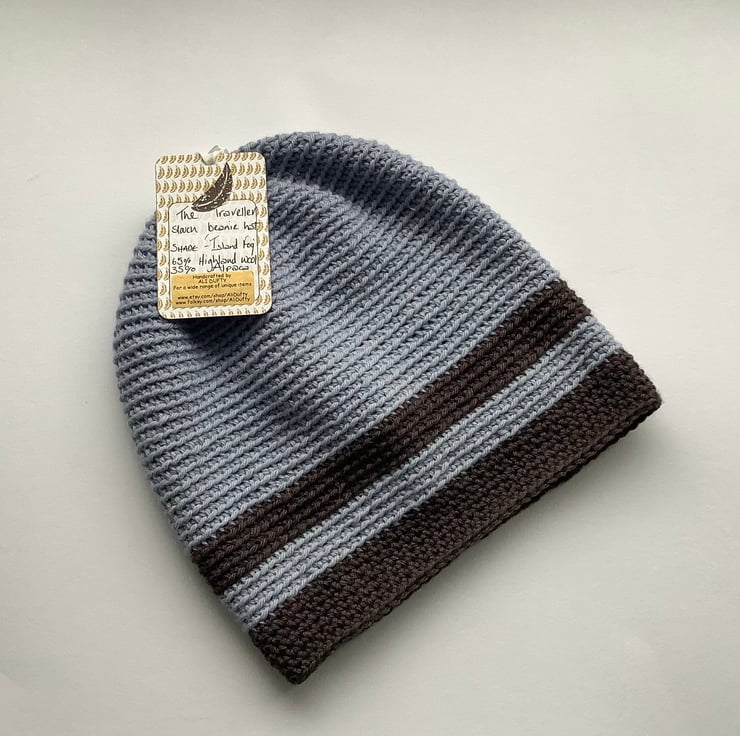 I have crocheted this 'Traveller' slouch beanie ,with a fabulously soft , eco- friendly Alpaca / wool blend yarn . Fashionably floppy yet lightweight ,warm and comfortable.