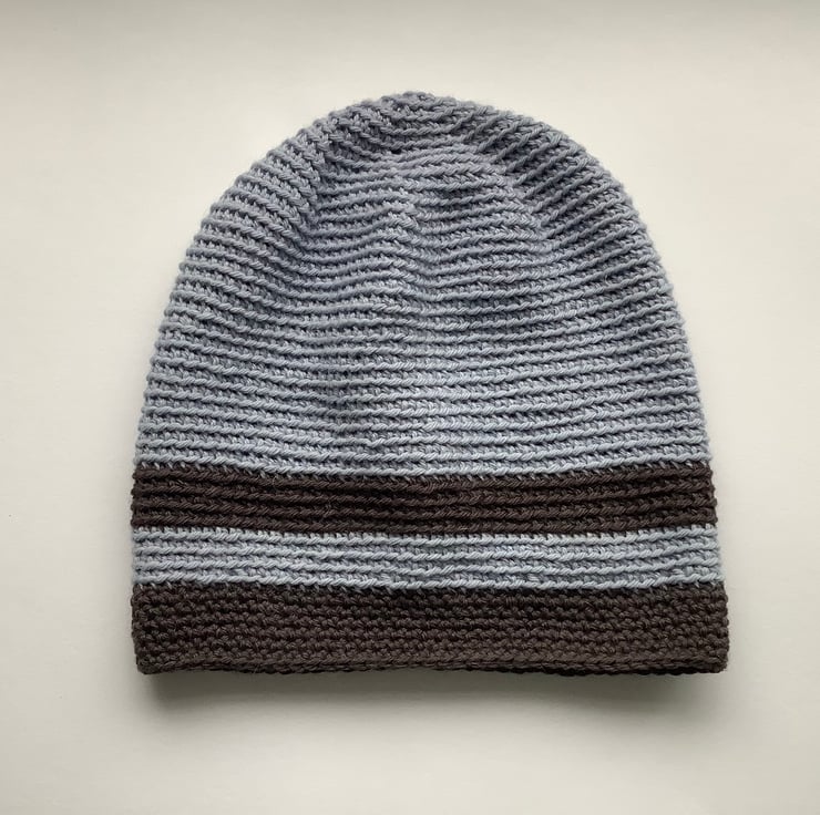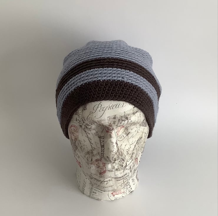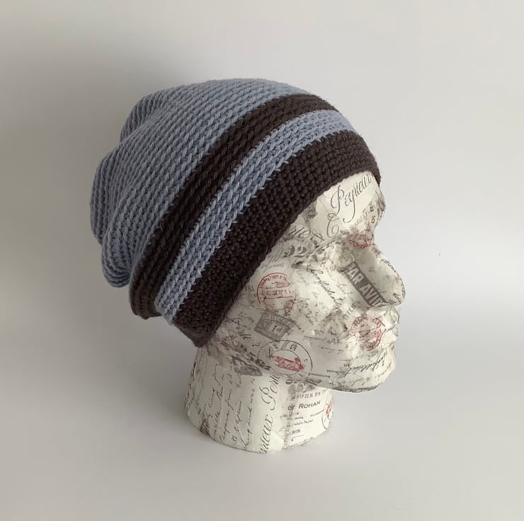 SLOUCH BEANIE hat 'Traveller'. Alpaca and wool blend. Ice blue, brown.