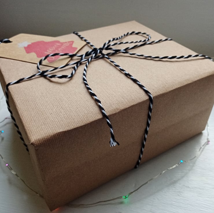 2 Soya Candles with Aromatherapy essential oils presented in a Kraft style gift box with magnetic snap shut lid with ribbon, snuggled in a bed of natural wood wool.