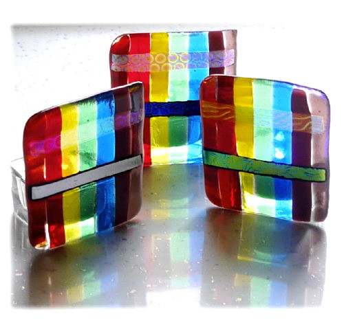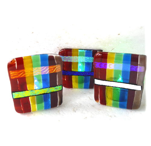 The colours cast by the rainbow and the sparkle of the dichroic glass make these candle holders very special indeed.
