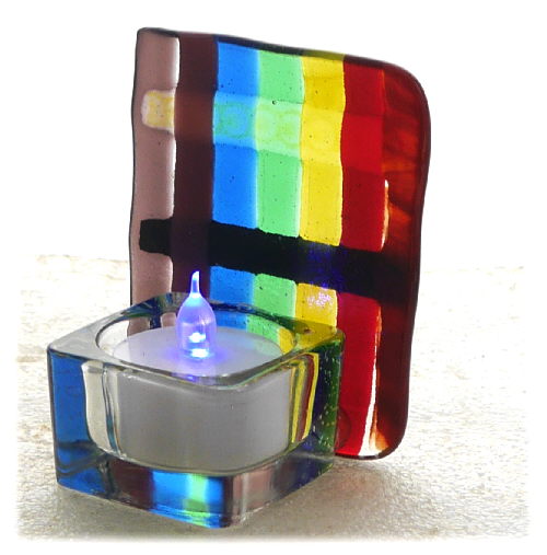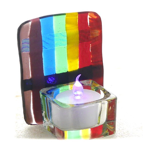 The tea-light holder itself is securely attached to the fused glass panel and comes to you complete with a colour changing electronic tea-light.