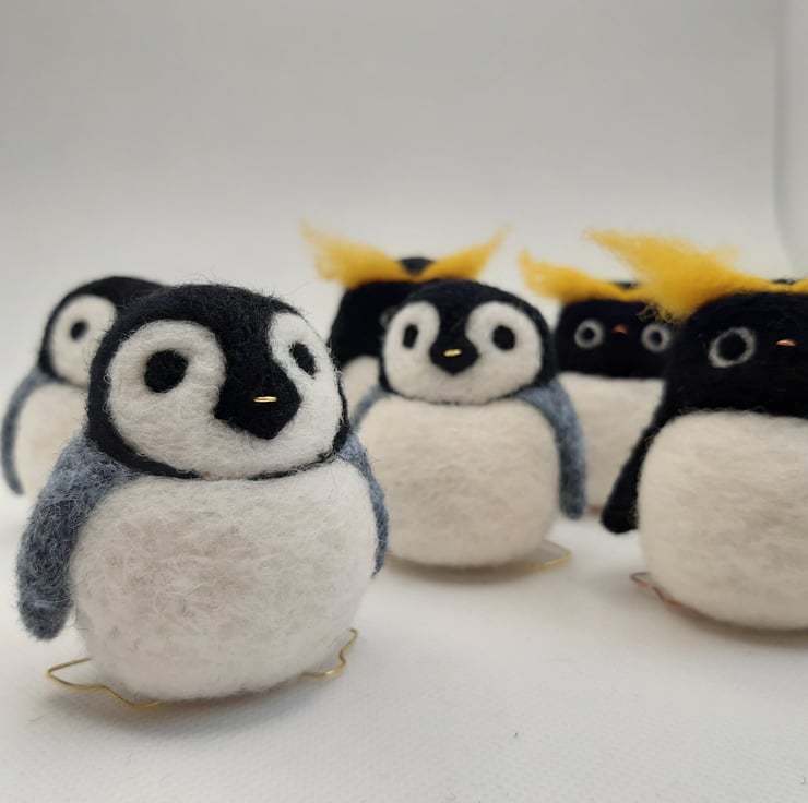 Needle felted baby penguin measuring approximately 5-6cm tall with wire beak and feet. The price is for ONE pingwing. As these birds are hand made, colours, features and size vary slightly giving each its own individual character.