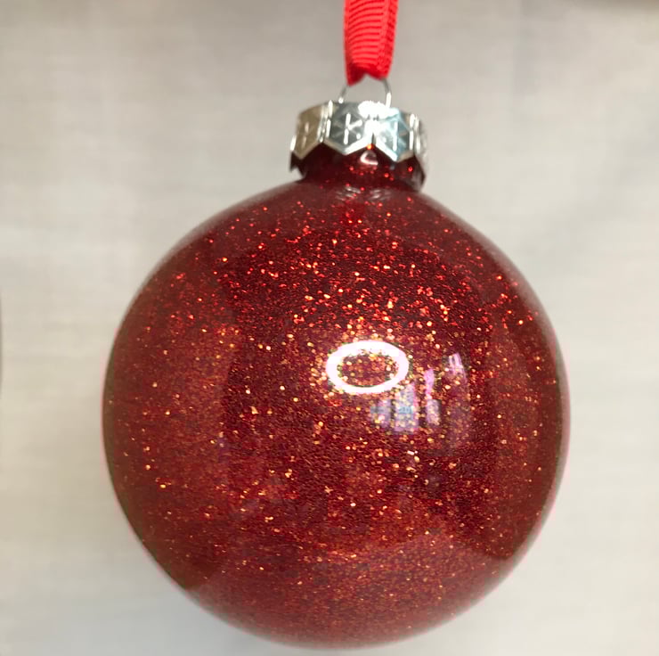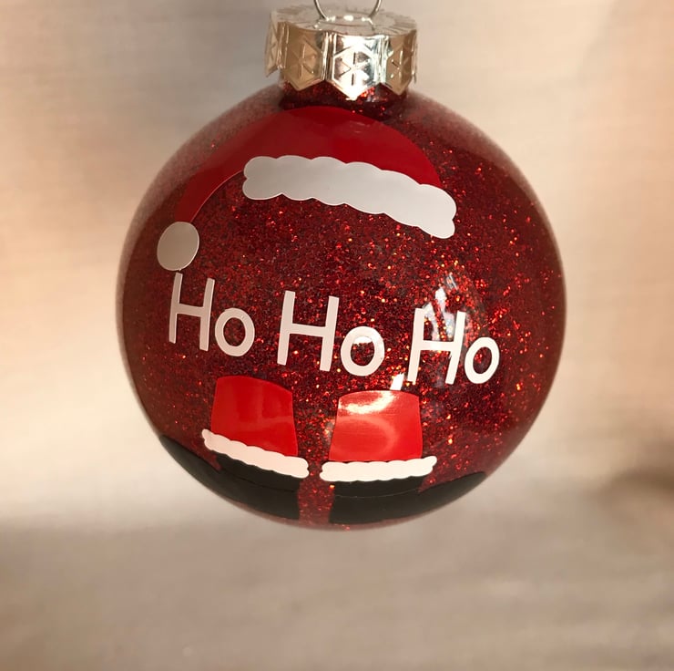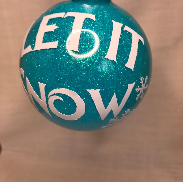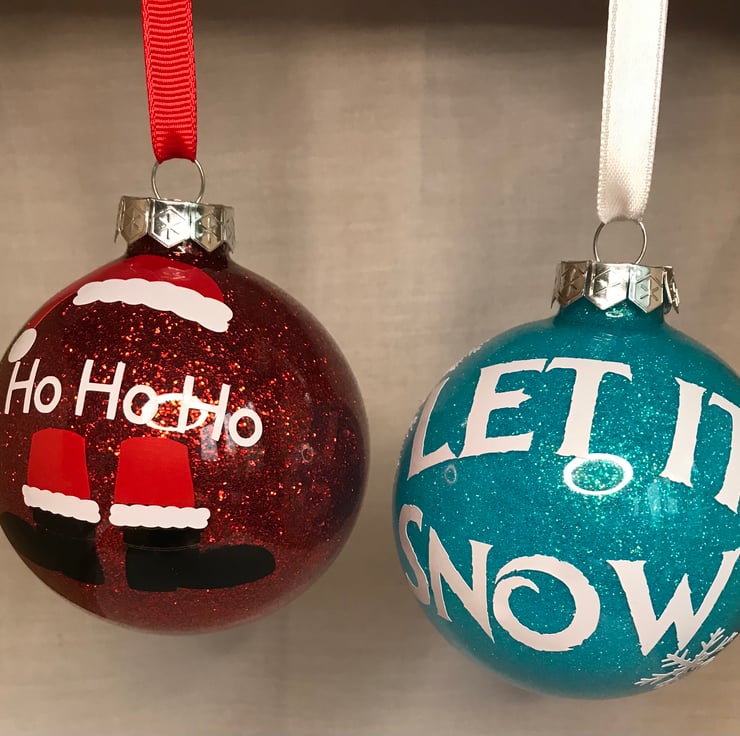 These glitter Christmas tree decorations are glass, the red glitter has Santa on with the words ho ho ho and the blue glitter has the word Let it snow from frozen theme fab looking decorations for your tree this year.