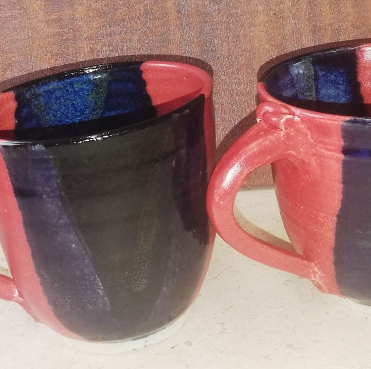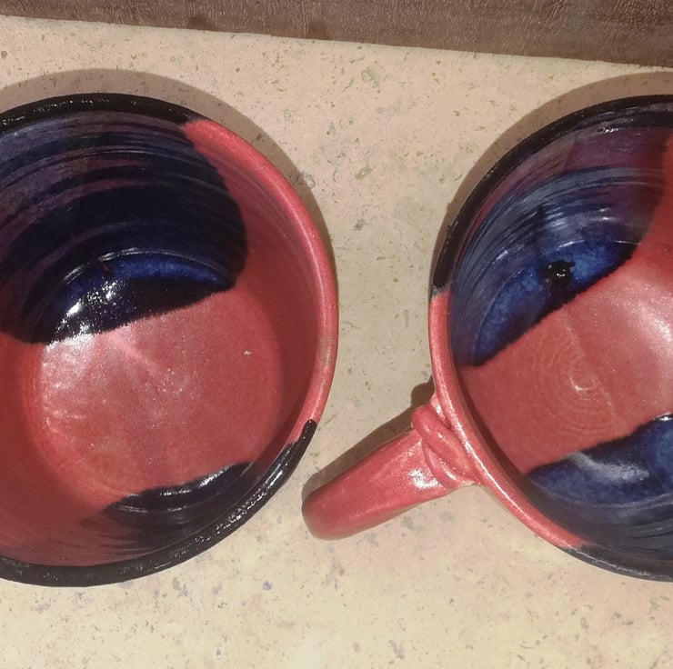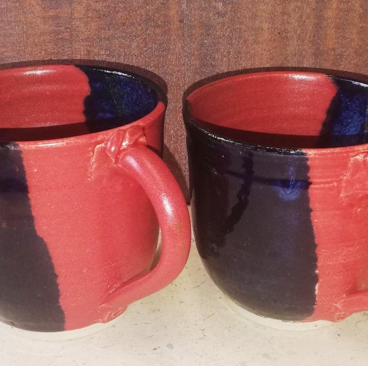 BRM2 Similar slightly smaller, matching mug with red and blue/black glaze.