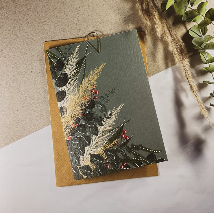 Beautiful Christmas foliage rendered with geometric detailing giving a modern finish.