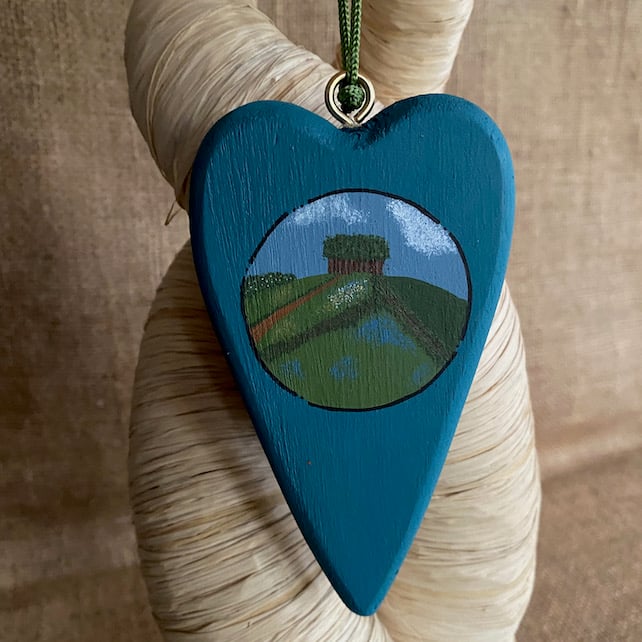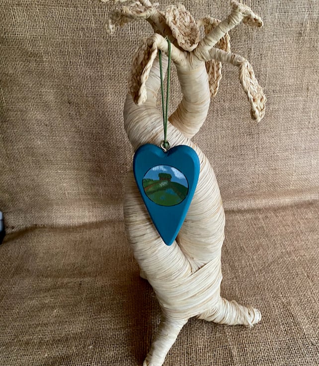 The heart is 12cm tall and 2cm thick with a brass hanging hook and green cord to hang from a nail or a cupboard handle.