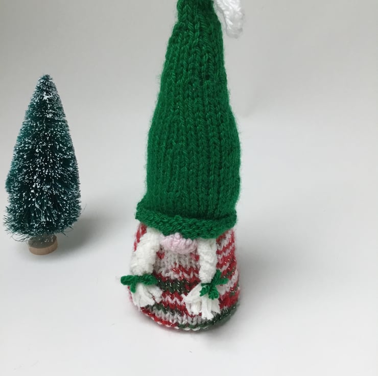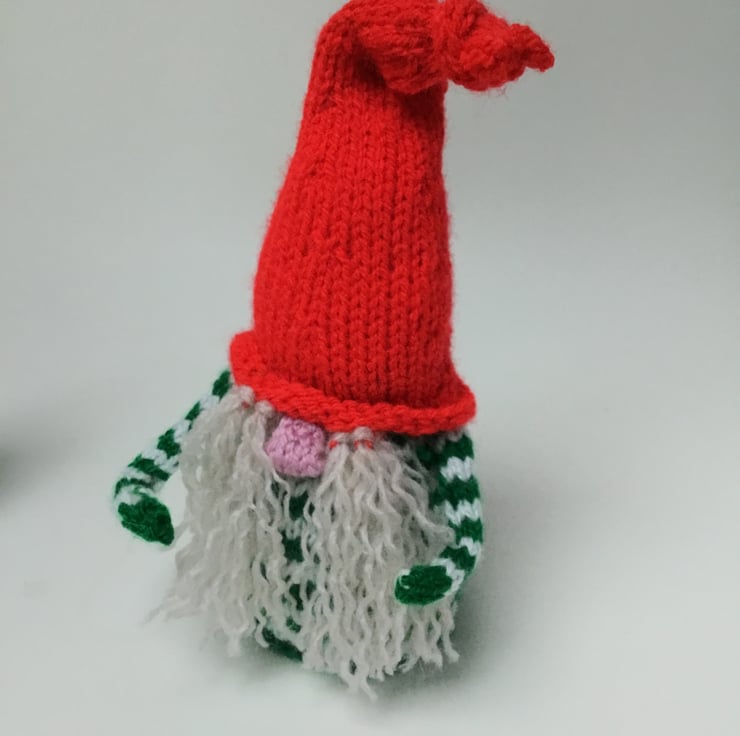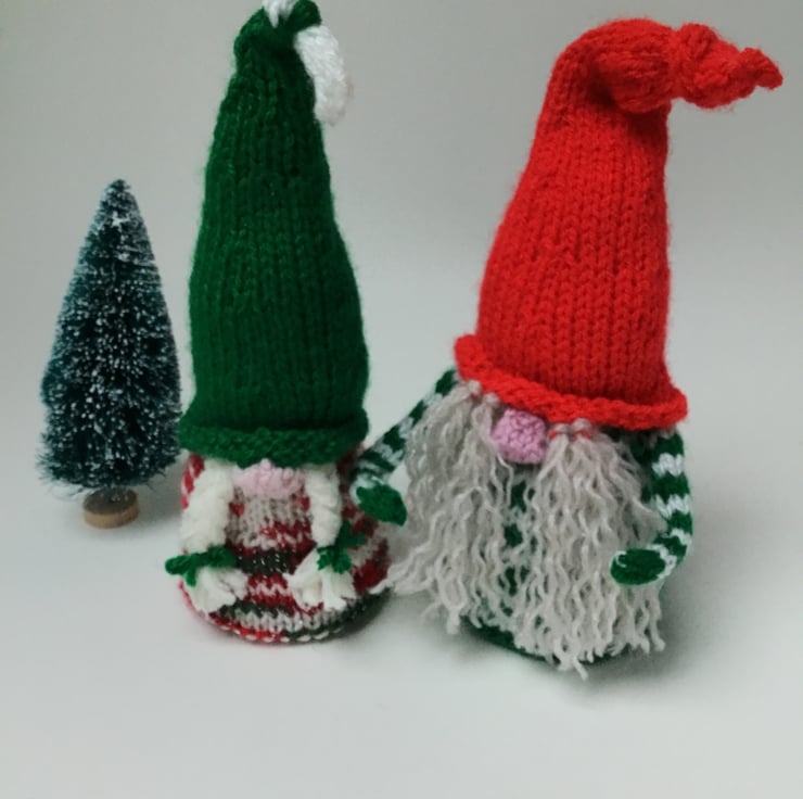 Joan and Jerome Gnome are longing to spend Christmas with you. They are hand-knitted from left-over yarn. They stand on a firm base and are filled with rice and polyester wadding. They won't need to share your Christmas dinner and they promise to look good and be on their best behaviour throughout your festivities.