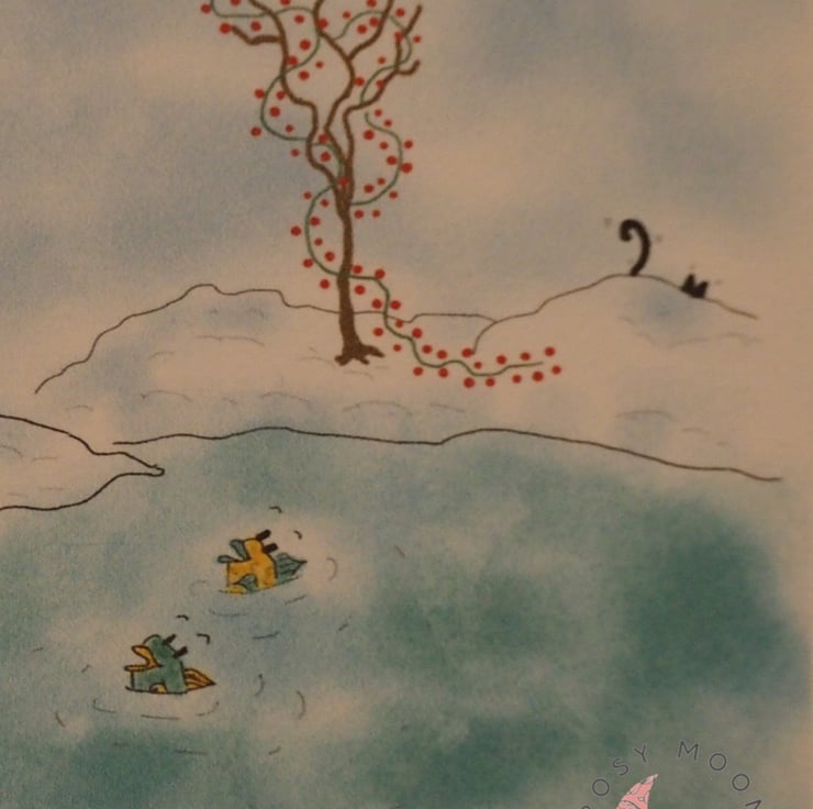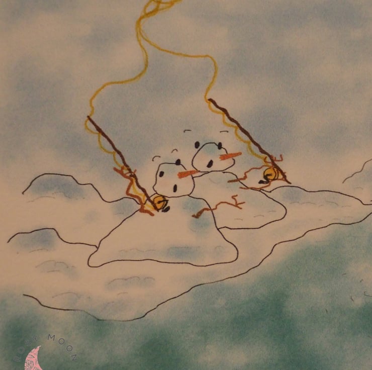 The two naughty snowmen have gone fishing and they aren’t the only ones causing chaos because the black cat has rearranged the fairy lights on the tree.