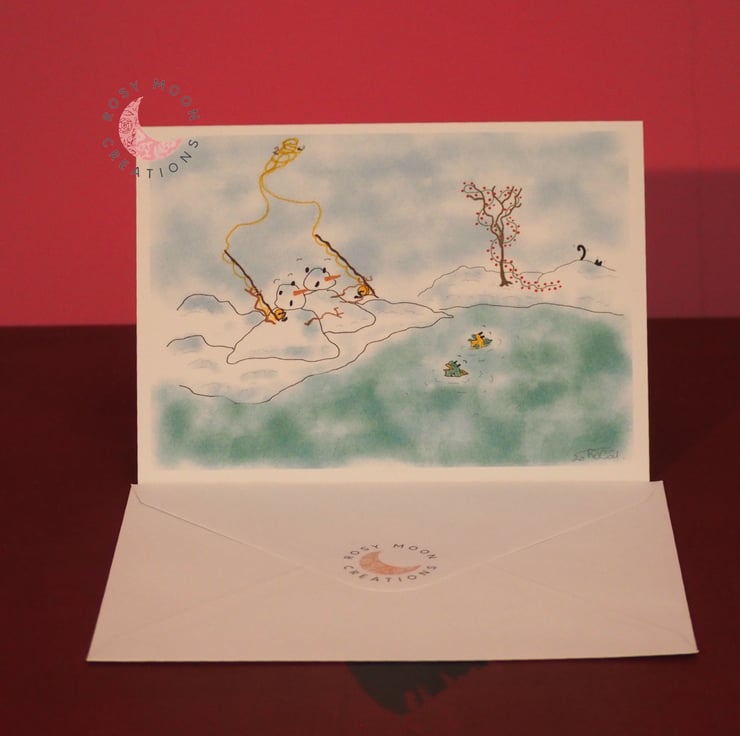 This 12x18cm card is hand drawn by me and printed onto quality card. The card is blank on the inside for your own special festive message and comes with a matching envelope.