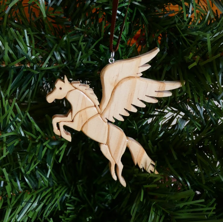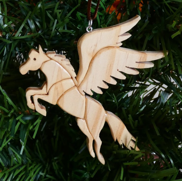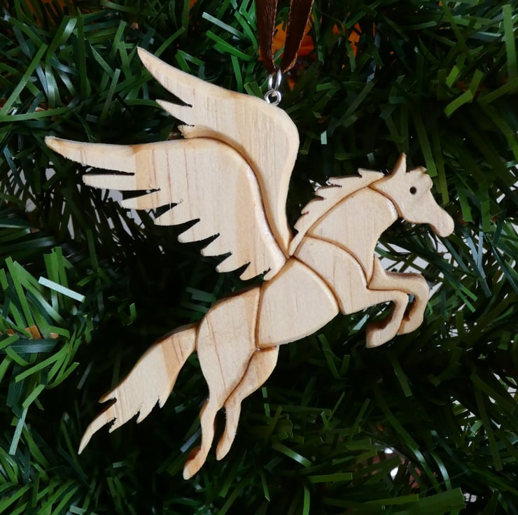 This unique wooden Pegasus Christmas Decoration, has been upcycled from reclaimed wood. This one of a kind Christmas ornament will make a lovely addition to your Christmas tree. This decoration will make a perfect gift for numerous occasions such as a gift for mum, a housewarming gift or a Christmas present.