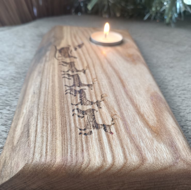 This is a charming christmas theme all together as a solid wooden tealight holder.